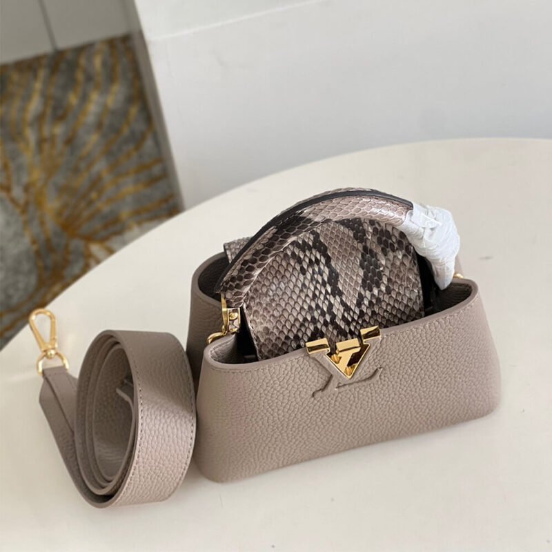 Taurillon-and-python leather trim
