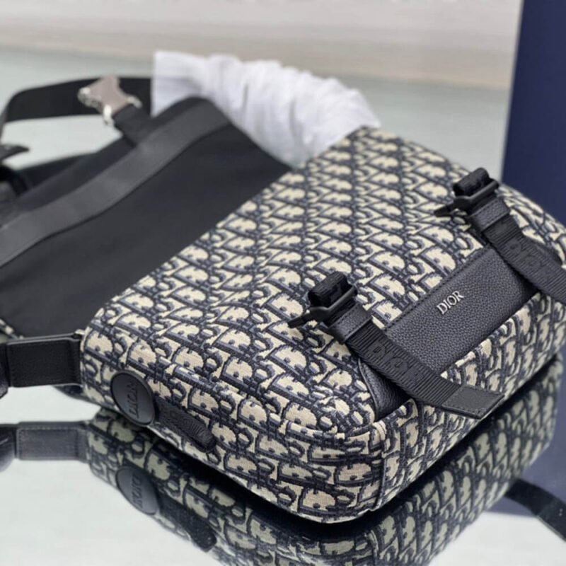 Adjustable Christian Dior nylon jacquard shoulder strap with padded leather insert