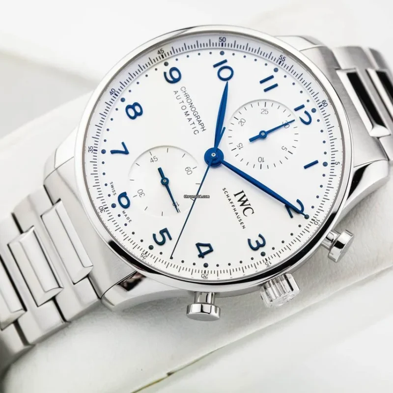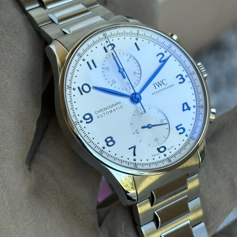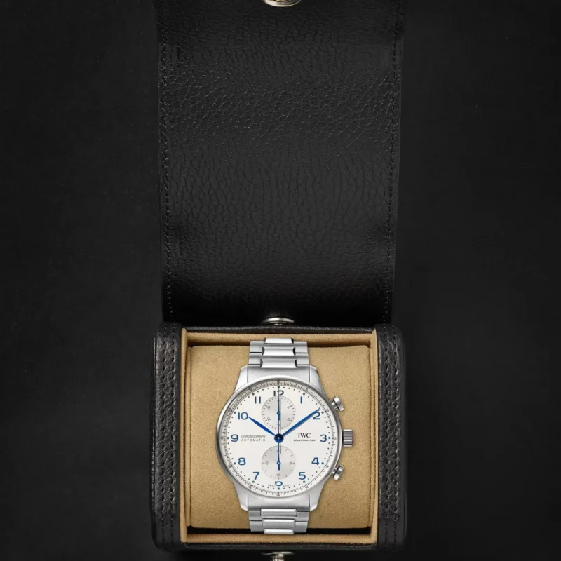 Inheriting the resolute and sporty style introduced by IWC Schaffhausen more than two decades ago, this IWC Portugieser men’s chronograph is now available for the first time with a stainless steel bracelet for a more refined look suitable for formal attire.