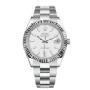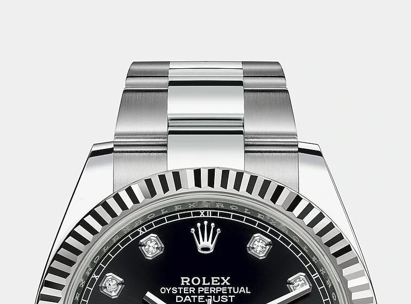 THIS OYSTER PERPETUAL DATEJUST 41 IN OYSTERSTEEL AND WHITE GOLD FEATURES A BRIGHT BLACK, DIAMOND-SET DIAL AND AN OYSTER BRACELET.