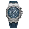 Smoked light brown dial with ??M??ga Tapisserie?? pattern, black counters and external zone, white gold applied hour-markers, white gold Royal?Oak hands with luminescent coating, black inner bezel